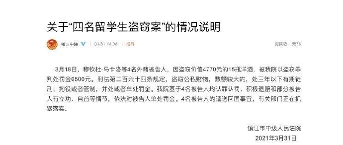 3月23日,江苏镇江中院在中国裁判文书网公布了一起盗窃案的一审判决书,该案被告人为马卡洛、基芬达、查马、贝纳德,四人是江苏大学学生,均来自赞比亚。