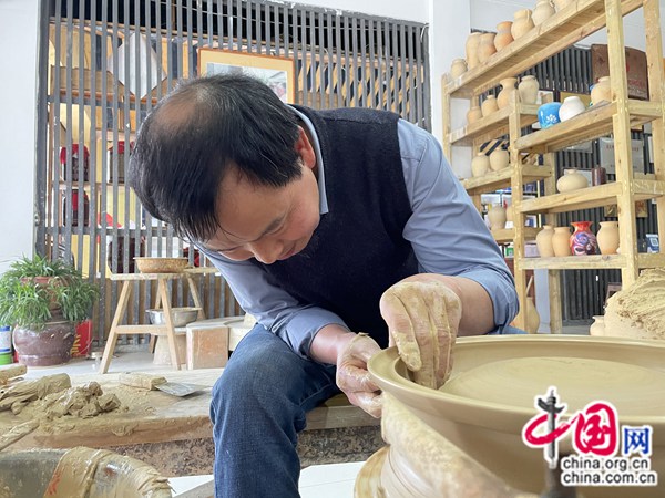 花茂村土陶非遗文化传承人母先才已经做了近40年的陶艺。他开的母氏陶艺馆是花茂村唯一一家陶艺作坊。如今,他开办的陶艺馆每年收入30万元左右,节假日还接待不少游客现场体验陶艺制作。