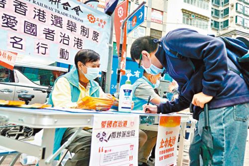 ●香港市民连日来在街站签名,支持完善香港选举制度,落实“爱国者治港”。 资料图片