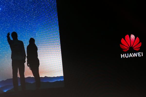 这是在英国伦敦拍摄的华为新产品与解决方案发布会现场(新华社)