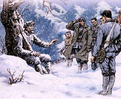 1935年6月12日,红军克服千难万险,用了大约3天时间,翻越夹金山,这是红军长征途中翻越的第一座大雪山,军需处长的故事就发生在这里。这个没有留下姓名的军需处长,把棉衣让给了战友,为了别人能走出雪山,他将自己永远地留在了山上。他的身体已经被冻僵,但他的信念却在战士们的身体里沸腾!