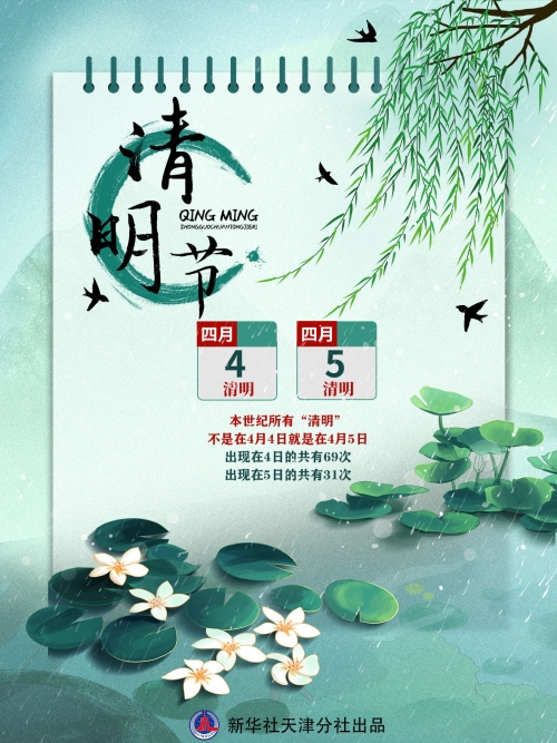 新华社天津4月4日电 4月4日21时35分,迎来二十四节气中的“清明”。天文科普专家指出,21世纪100年中的所有“清明”不是在4月4日就是在4月5日,其中,出现在4日的共有69次,出现在5日的共有31次。