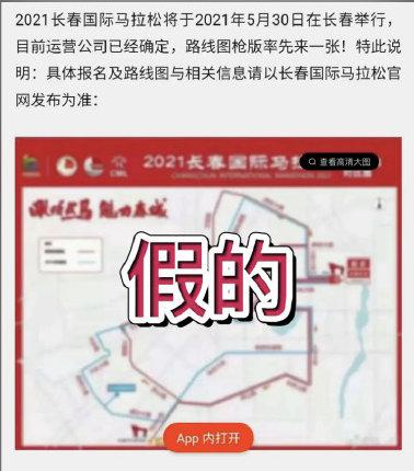 据@中国互联网联合辟谣平台 消息,近日,一张有关“疑似2021长春国际马拉松路线图”的照片在网上流传。“2021年长春国际马拉松赛事又回来了,甚至路线图都已经出炉了”,长春市体育局相关负责人表示,目前长春市确实已经向中国田径协会申请2021年度的长春国际马拉松赛事,但能否举办,什么时间举办,都还有待最后的商定,也要看疫情的发展情况。网上关于路线图出炉的消息是假的,大家不要以讹传讹。