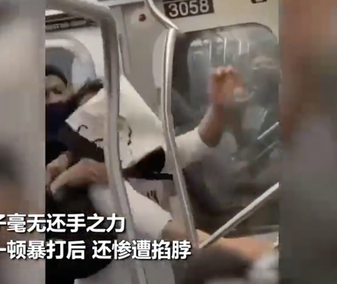 亚裔在纽约地铁遭黑人毒打,瞬间被压制按座位上暴锤!众人冷眼旁观