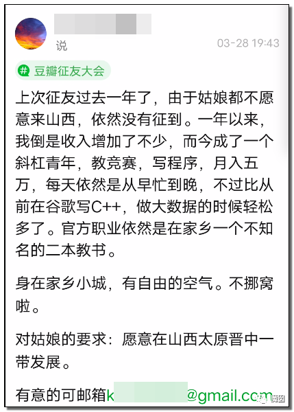 并发现他不是第一次发帖相亲