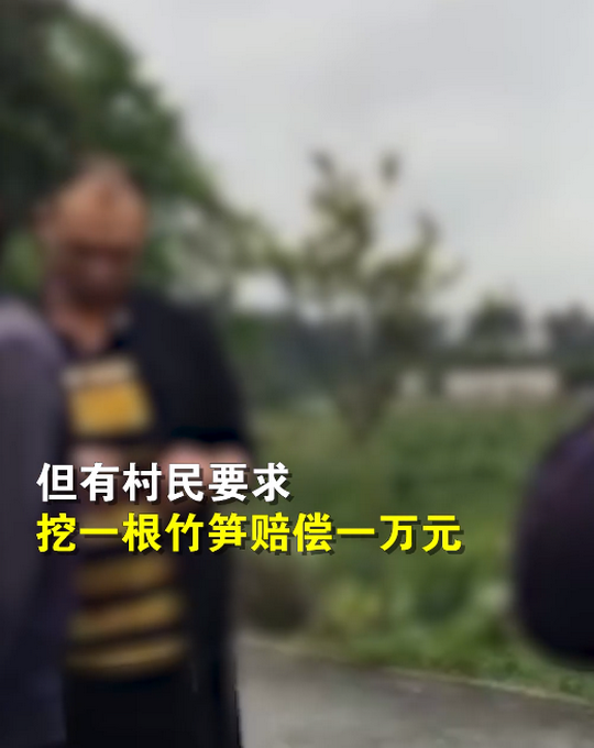 网友称,约采挖竹笋五六十斤,希望称重后按市场价赔偿,但有村民要求,挖一根竹笋赔偿一万元。经警方和当地政府工作人员协调,网友最终向村民赔偿1500元。