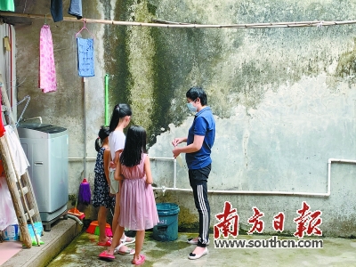 社工吴建烽来到李锐家不久,拿起了饭桌上的网罩,看一眼剩菜,了解了一家人的营养状况,这样更方便“搭话”。在有限的探访时间里,医护、社工要迅速和患者及其家属建立起信任,工作才能顺畅、高效。