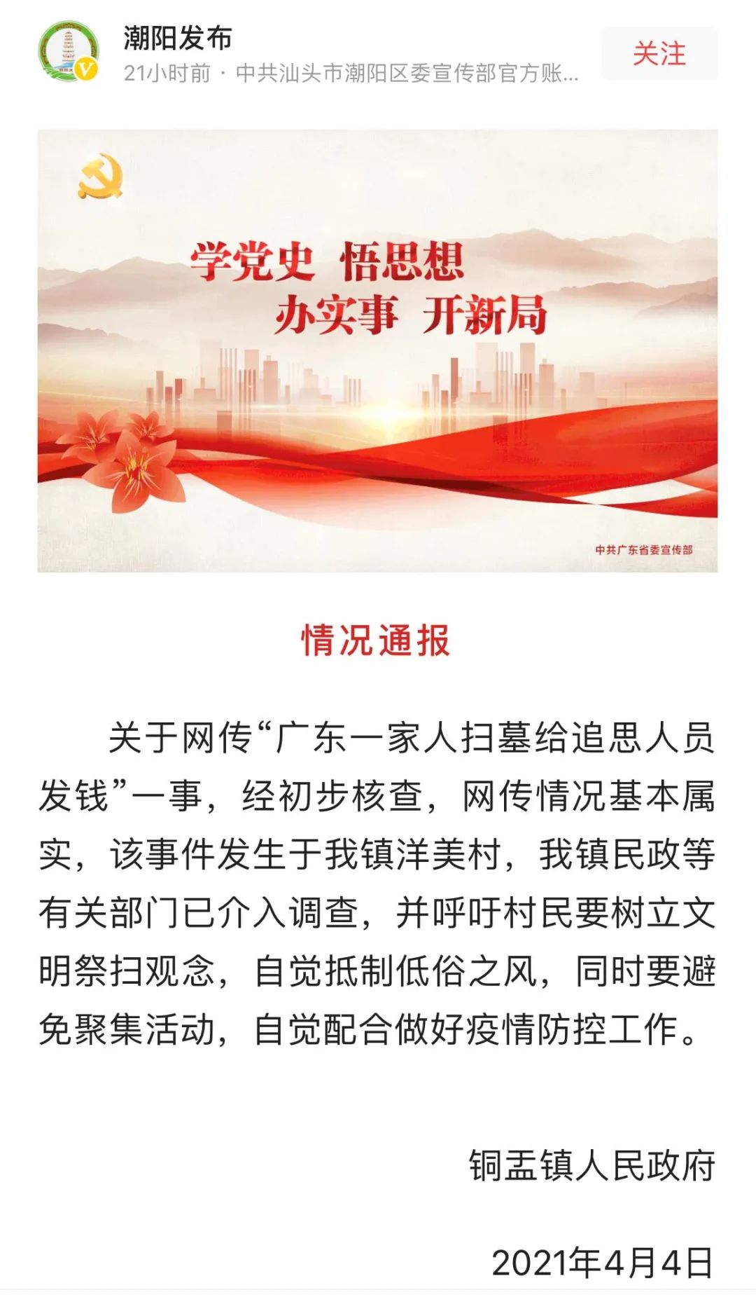 原标题:[热议]广东一“土豪”扫墓,追思者现场排队领钱?官方回应