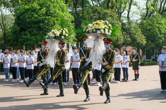 重庆城市管理职业学院开展清明祭英烈主题团日活动,向英烈献花。通讯员 徐果摄