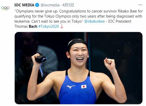 中新网4月6日电 当地时间5日,国际奥委会主席巴赫向获得东京奥运会资格的池江璃花子表示祝贺。他说道:“奥运健儿从不放弃,祝贺池江璃花子在被诊断出白血病仅两年后就获得东京奥运会的参赛资格。迫不及待地想在东京见到你。”
