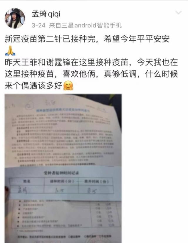 王菲粉丝留言表示,消息应该属实,因为不止一位网友曝光“锋菲”打疫苗的路透,当时,两人大方同框现身,并没有回避路人。