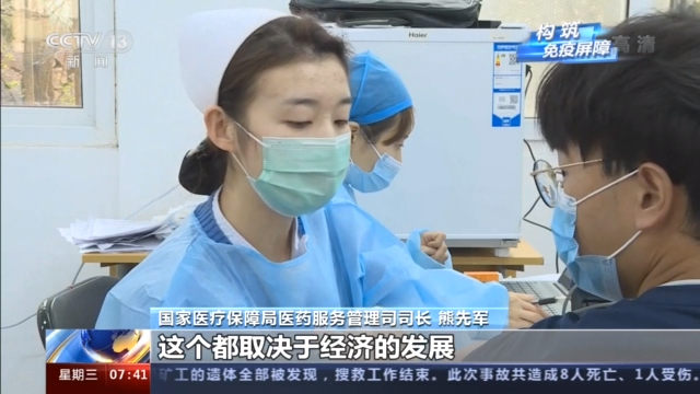 国家医疗保障局医药服务管理司司长熊先军:如果说我们能够很快的建立这个免疫屏障,那么我们整个社会和经济就能够很快进入常态,能够进入一个正常发展。那实际上我们的医保基金,第一个是来源于单位的缴费,第二个是来源于老百姓的缴费,第三个就是政府财政的这个补充。但是无论怎么样,这个都取决于经济的发展。经济发展好了,把这些问题解决了,我们医保基金的收入也会得到持续的增长。所以从长远来看,这个对医疗保障制度的可持续发展是有利的。我们是从这个算这个“大账”的角度来考虑的,所以决定这一次,用医保的结余资金来支付疫苗的费用。