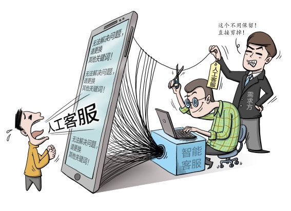 记者与多家平台的客服机器人对话发现,有些机器人听不懂问题时,会主动询问是否需要转人工客服,比较贴心。但也有机器人像钝刀子割肉一样,即使听不懂,也只会简单回复“无法解决问题,请更换其他关键词”,而不是尝试给出一些可选问题,更不会主动转到人工客服。智能客服供应商表示,遇到机器人无法解决顾客问题的情况,到底是立即转人工还是不转人工,也是可以根据需求来设置的。“如果不希望顾客转人工,连转人工这个关键词都可以不去设置。”