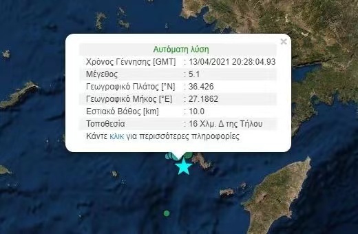 据希腊地震机构——雅典地球动力学研究所发布的消息,当地时间4月13日23时28分,希腊提洛斯(Tilos)岛附近海域发生地震。