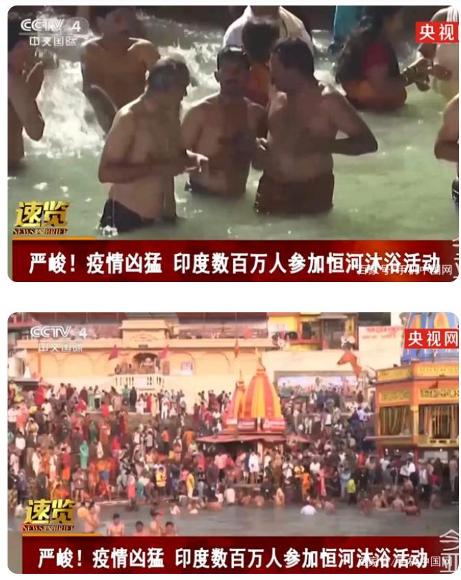 4月11日,印度民众为庆祝“大壶节”,已有近300万人进入恒河中“洗清罪孽”。据警方表示,由于人数太过于庞大,已经无法强制让人群保持安全距离,且每时每刻都有11000至18000人浸泡在15条支流当中。印度卫生部12日的疫情数据显示,仅1天内,印度新增病例数将近17万例。在接下来的72小时内,有超过百人新冠检测呈阳性。