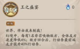 回合开始时,若自身未处于“无法动作”,开启【王之盛宴】幻境。