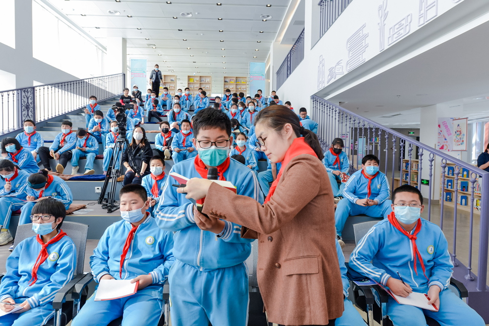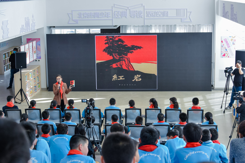 4月14日下午,北京市红领巾读书活动青少年经典导读活动空间启动仪式暨图书馆阅读课2021年第一课活动在首都图书馆耿丹分馆北京市青少年经典导读活动空间正式开课。(首都图书馆供图)