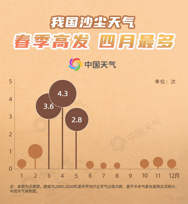 常年来看,在我国,4月仍是沙尘天气的高发期,沙尘过程能达到4.3次。近期,我国北方沙尘天气频繁来袭,公众需及时关注临近预报,并做好防护工作。