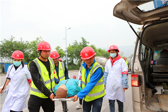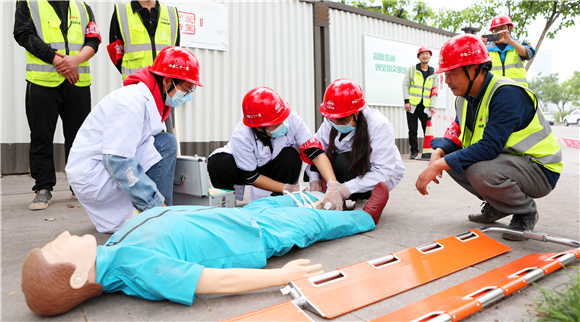 演练模拟了钢筋工在绑扎柱筋的过程中不慎从约2米高处坠落至地面后,安全保卫组、事故救援组、事故调查组、医疗救护组、技术指导组等应急救援力量立即赶往现场进行联合救援的应急演练过程。此次应急演练从事故发生、事故报告、预案启动、应急救援、应急结束等进行了全过程模拟,让项目管理人员亲身体验、了解在发生安全事故时如何进行处置及自救、互救,检验了员工对突发事故的反应及处置能力。