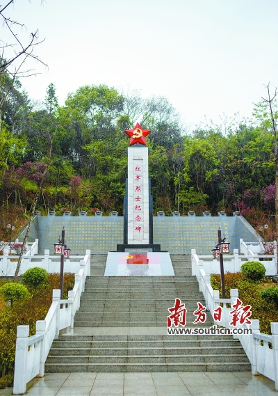 图为位于铜鼓岭106国道旁的红军烈士纪念碑。