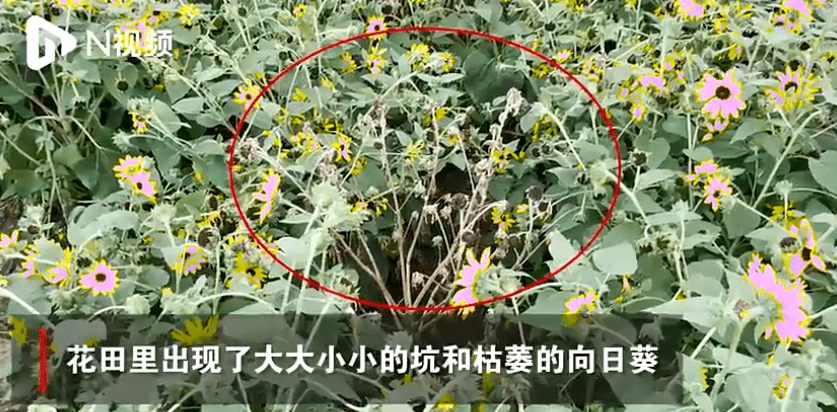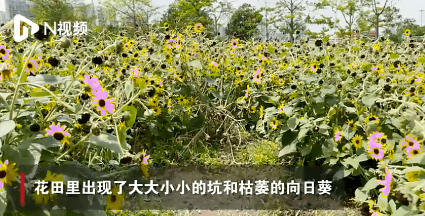 据了解,这片向日葵景观于清明节前重新铺设,吸引大批市民前来打卡拍照,但参观者中出现个别不文明现象,有人蹲进花丛拍照,致不少向日葵提前枯萎凋谢。4月14日,N视频记者在现场看到,打卡市民众多,草坪上出现大大小小的坑。