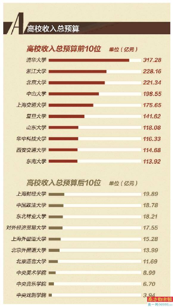 仅有3所高校高等教育支出预算超30亿