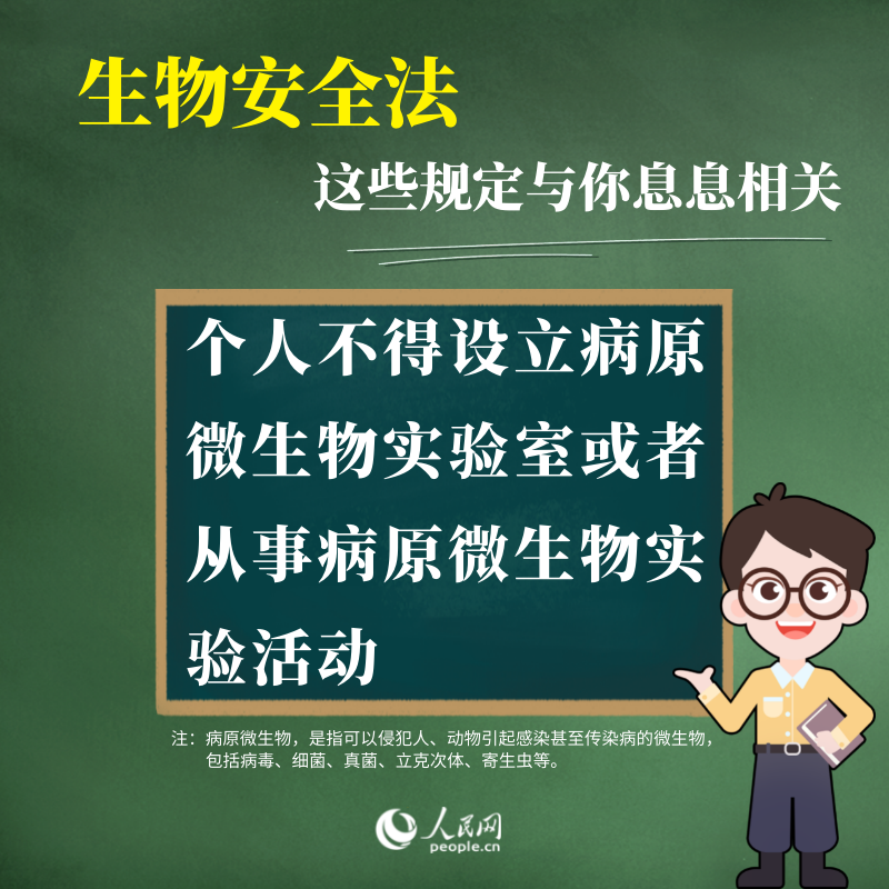 编者按:2021年4月15日,《中华人民共和国生物安全法》开始施行,这是生物安全领域的一部基础性、综合性、系统性、统领性法律,标志着我国生物安全进入依法治理的新阶段。到底什么是“生物安全”?生物安全法中哪些内容与你我有关?人民网带您寻找答案。
