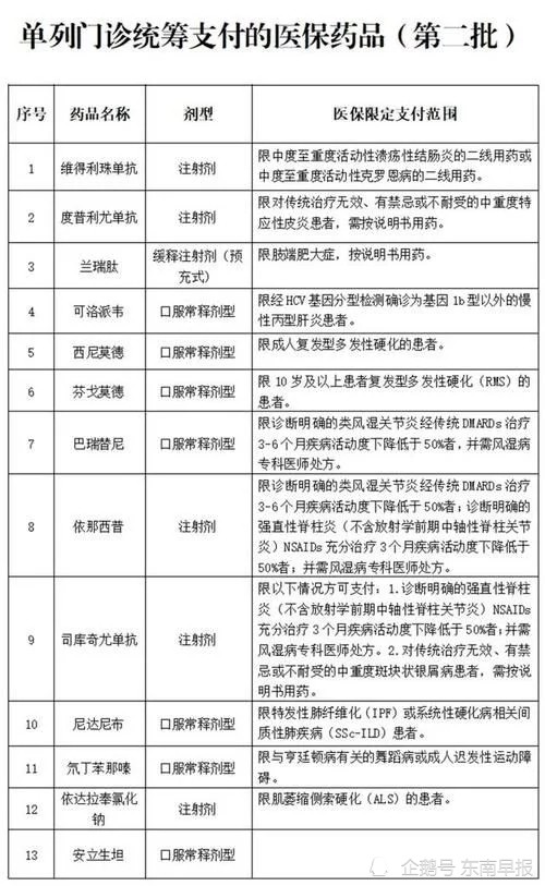 据了解,今年以来,两批单列门诊统筹支付的医保药品,主要是门诊使用、使用周期较长或规范治疗年度总费用较高的治疗用药。目前,泉州已公布了两批单列门诊统筹支付的医保药品,第一批今年1月1日实施的有20个药品,第二批3月1日实施,有13个药品。