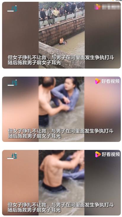 4月13日,浙江瑞安一女子跳河,有名男子下河救援,该女子挣扎不让救。男子和女子在河里面发生争执打斗起来,最后路人一起帮忙救援女子上岸。