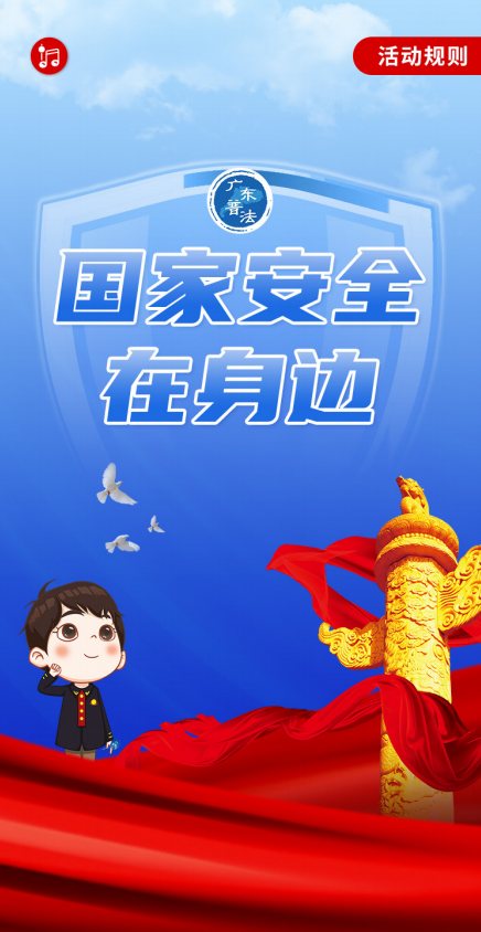 一、扫描下方“广东普法”二维码,点击菜单栏的“国家安全”,即可进入活动页面。