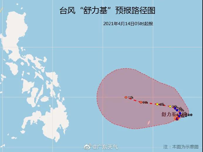据@广东天气消息:今年第2号台风“舒力基”已于4月14日02时,在菲律宾以东洋面上生成,中心附近最大风力8级(18米/秒,约65公里/小时)。