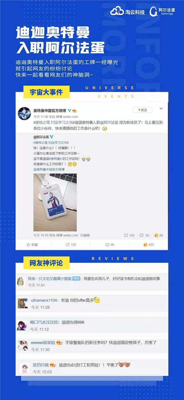 4月15日,安徽淘云科技股份有限公司旗下品牌阿尔法蛋官宣迪迦奥特曼成为新员工,担任阿尔法蛋词典笔宇宙学习官。奥特曼中国官方微博予以证实并送上祝福。