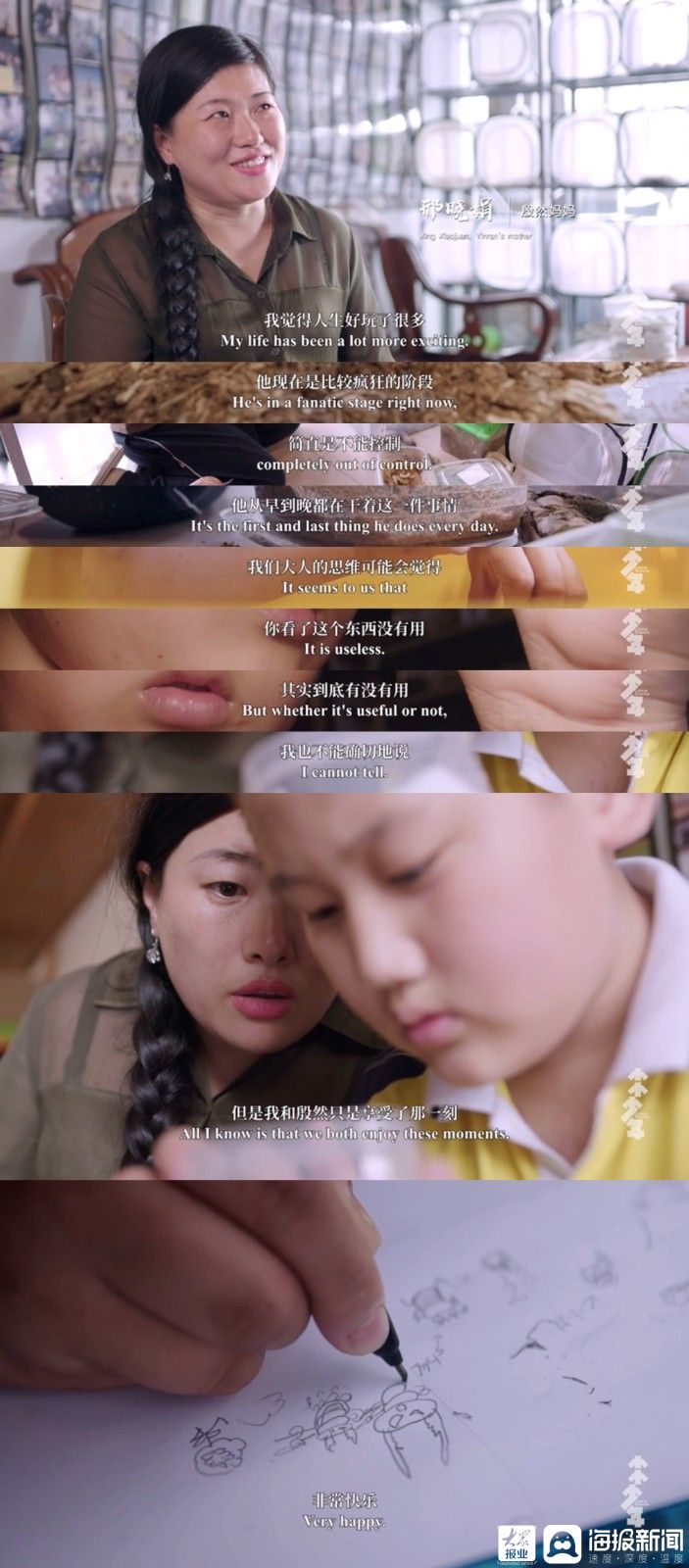 纪录片中,几位家长对于孩子热爱义无反顾的支持格外引人注目。比如在第三集《自然之道》中,面对一个没事就往家里带虫子的儿子,殷然妈妈豁达的表示“人生好玩多了”;当李莲怡娜被质疑女孩子不应该玩赛车时,她的父母全力以赴支持她的热爱;当陶启泽把备战高考的时间用在机器人上面,她的妈妈说“如果不让他玩,那他每天只有学习,总觉得不完美”。