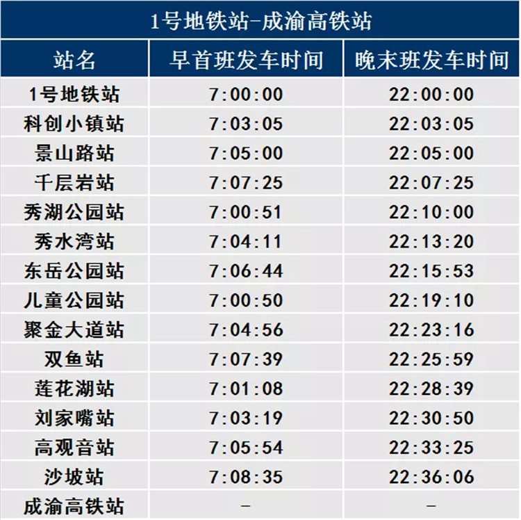 在运行时刻表上,清楚地标明,早上7点,最早的一班云巴将从1号地铁站开行。晚上10点36分,云巴的末班车将从“沙坡站”发出。