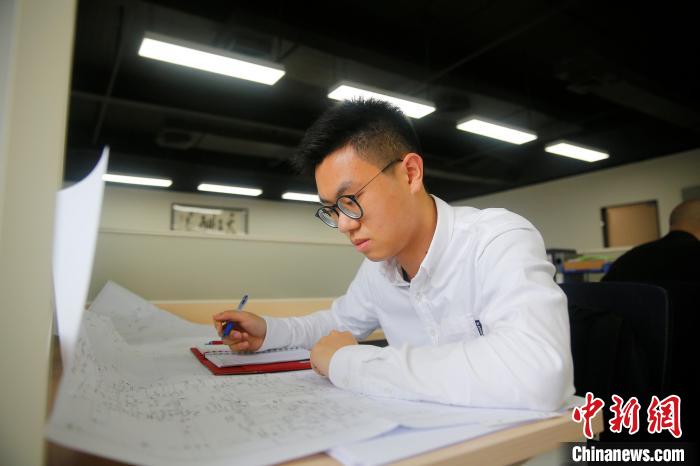 图为澳门青年建筑设计师黎俊鸿在位于珠海横琴的办公室内工作。 王骏 摄