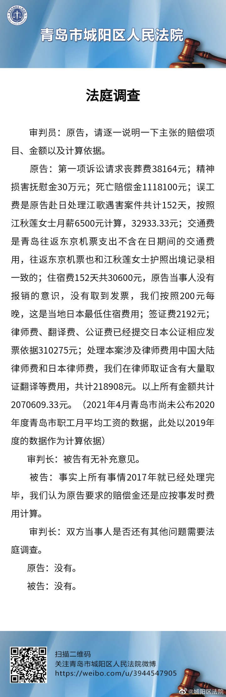 4月15日9时,备受关注的江秋莲诉刘鑫(现名刘暖曦)生命权纠纷案在山东青岛市城阳区人民法院开庭审理。城阳区人民法院在其官方微博公开对此案进行图文直播。
