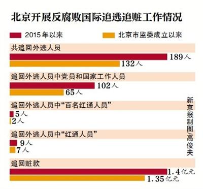 2015年以来,全市从16个国家和地区共追回外逃人员189人,包括党员和国家工作人员102人,7名“百名红通人员”已有蒋雷等5人归案,涉嫌职务犯罪的12名“红通人员”已有叶丽宁等9人归案,追回赃款1.4亿元;其中,市监委成立以来,共追回外逃人员132人,包括党员和国家工作人员65人、“百名红通人员”2人、“红通人员”7人,追回赃款1.35亿元;全市追回“百名红通人员”“红通人员”人数在全国名列前茅,多年实现外逃人员“零增长”。外逃人员存量大幅削减、增量得到有效遏制,有力扭转了“一贪就跑、一跑就了”的局面。