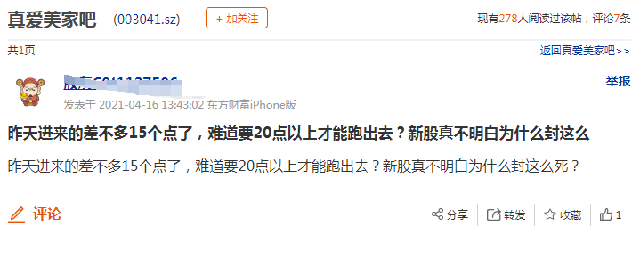 针对该股近日异常走势,股吧里的网友们瞬间吵翻了。有网友表示,“昨天进来的差不多15个点了,难道要20点以上才能跑出去?”,“我打板进的昨天亏二十个点,今天又亏十个点,周一估计还要亏十个点,大佬救我啊”。