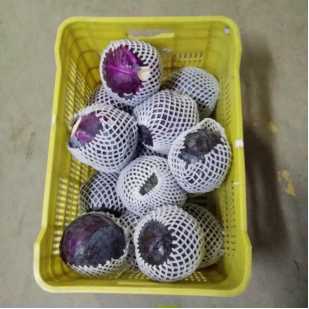 好的包装能促进蔬菜销售,提升产品竞争力,促进农业品牌建设,应根据销售渠道和配送方法选择合理包装方式。圆白菜、紫甘蓝、水果型甘蓝多采用保鲜膜包裹方式,抱子甘蓝多采用包装盒、托盘+保鲜膜包装,羽衣甘蓝多采用保鲜袋包装。甘蓝合理的包装方式应以保持叶片不失水、不产生机械损伤为原则。圆白菜、紫甘蓝、水果型甘蓝包装数量较大时,可采用机械裹膜方式包装,机械包装紧实度适宜,包装美观,还可节约包材,降低包装成本,能降低包装工人劳动强度,可提高工效5倍以上。