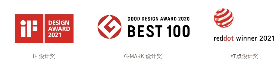 德国的iF设计奖和红点设计奖,以及日本的G-Mark设计奖,是业界公认的国际性创意和设计认可标志,获得其中之一,即意味着产品设计和质感获得了最具权威的"品质保证",这是设计师们一生求索,并引以为豪的殊荣。