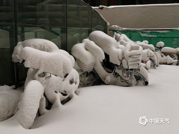 ↑4月15日至16日,内蒙古呼伦贝尔市遭遇强降雪。(图/徐玉强)