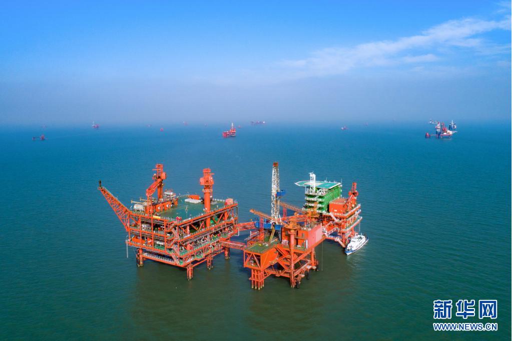 这是胜利油田青东5采油平台(无人机照片)。新华社发