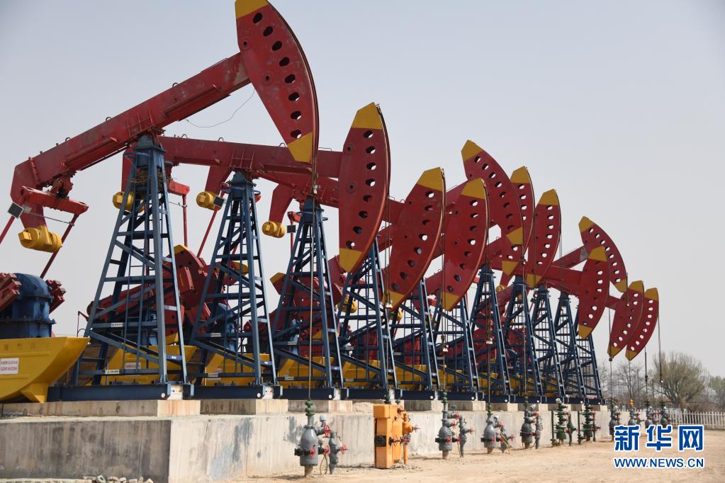 3月31日,胜利油田孤岛采油厂的一排抽油机在作业。新华社记者 张武岳 摄