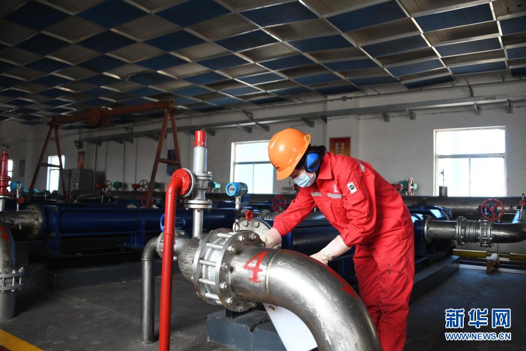 3月31日,工作人员在胜利油田孤岛采油厂的一个配注站中检查聚合物配制情况。新华社记者 张武岳 摄