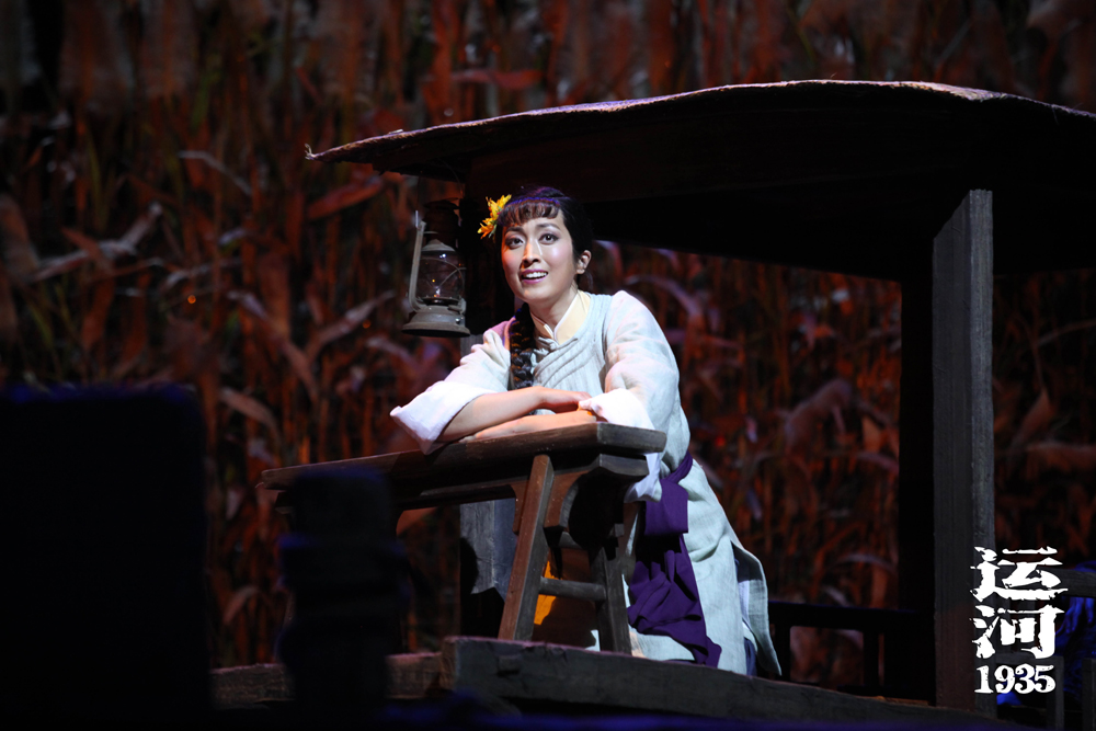 艺术家们发挥各自所长,从戏剧艺术创作的方方面面入手,合力将运河生动鲜活的风土人情与动人心弦的时代故事一一呈现。为还原运河风貌,创作者们选取了代表运河传统特色的渔船、拱桥、芦苇荡等元素组成舞台图景。同时,利用灯光与特殊地板材质的配合,加之“独家秘制”的流水声,在舞台上创造出一条盈盈流淌的大运河。服装化妆方面,创作者翻阅了大量当时文字及影像资料,并依据演员本身特点量身定制造型,最大化地帮助他们贴近角色特点,无障碍入戏。