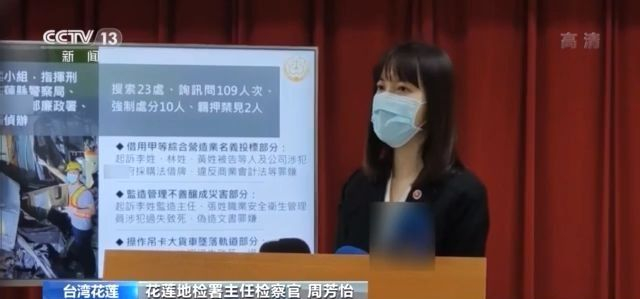 花莲地检署主任检察官 周芳怡:操作吊卡大货车掉落轨道部分,起诉李姓报告涉犯过失致死、过失毁损轨道以及肇事逃逸等罪嫌,另外一名华姓被告涉犯过失致死罪嫌。