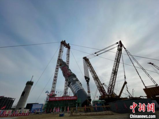 中新网揭阳4月17日电(记者 方伟彬)起吊重量达4606吨的抽余液塔17日在广东揭阳成功吊装,该塔的就位刷新了亚洲最重塔器吊装纪录。