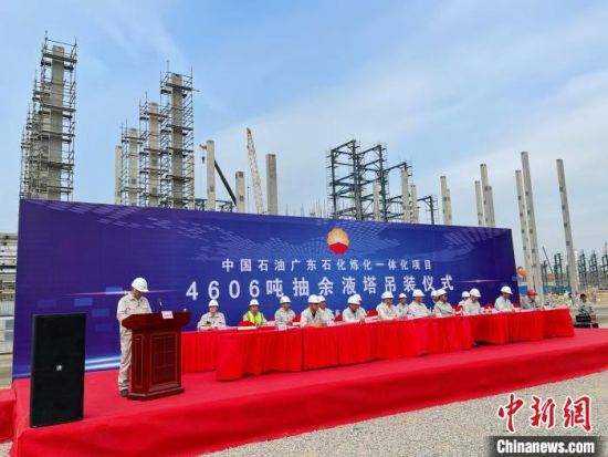广东石化炼化一体化项目4606吨抽余液塔吊装仪式现场。 方伟彬 摄