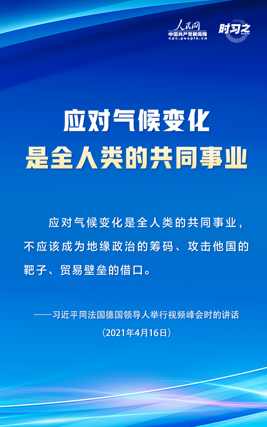 【编者按】4月16日下午,国家主席习近平在北京同法国总统马克龙、德国总理默克尔举行中法德领导人视频峰会。三国领导人就合作应对气候变化、中欧关系、抗疫合作以及重大国际和地区问题深入交换意见。人民网·中国共产党新闻网“时习之”栏目摘录了习近平在这次视频峰会上的重要讲话内容,一起学习。