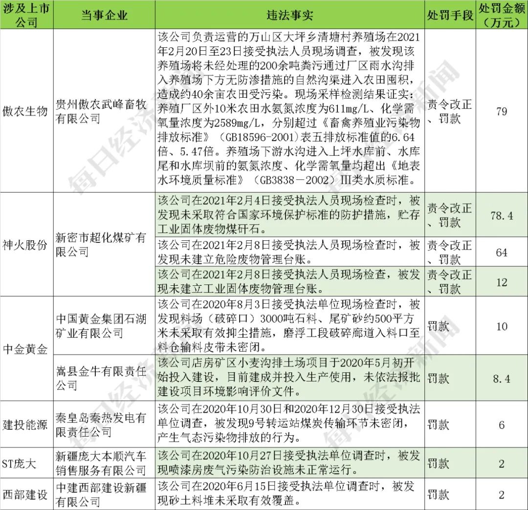 2021年4月第2周,数据库搜集到8家关联企业收到环保部门的行政处罚决定或责令改正违法行为决定,涉及9家上市公司。